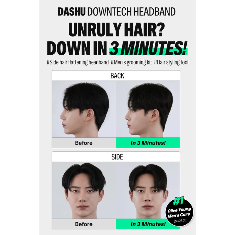 - EFFORTLESS MEN GROOMING HEAD BAND. If women have hair rollers, men have the DASHU Perfect Downtech Original! This men’s grooming downperm ensures comfortable fit and optimal compression of the side hair and back hair of the head, resulting in a pushed-down side hair and sleek neckline that lasts all day!