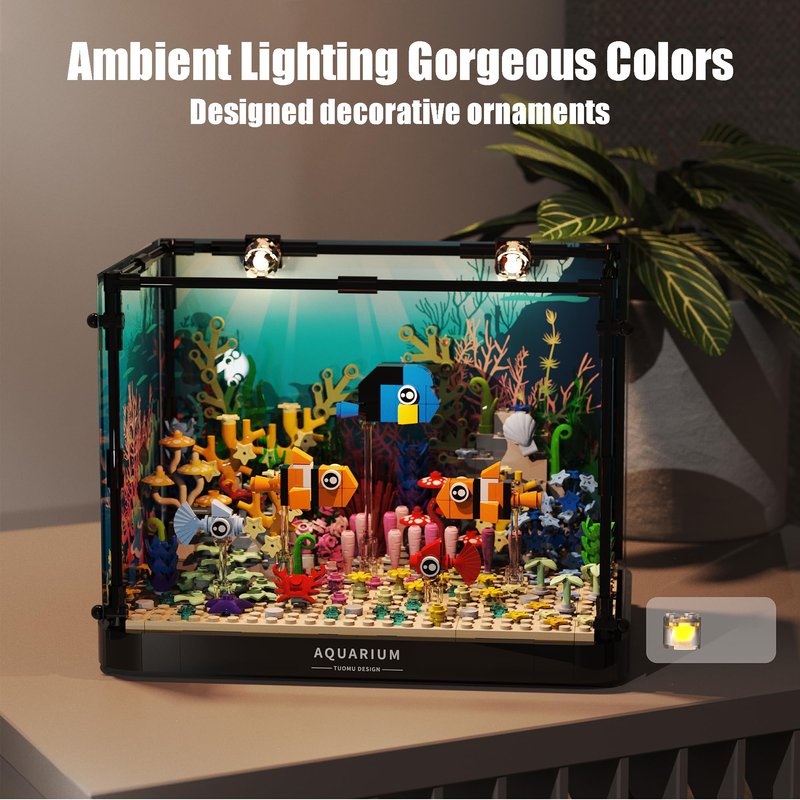 - UNIQUE DESIGN CONCEPT: This fish tank block vividly recreates the scene of the Atlantis World Aquarium, including coral, seaweed plants, colorful deep-sea fish and some other marine animals and plants, as well as creative and unique lighting design, presenting amazing lighting effects and realistic night marine effects.