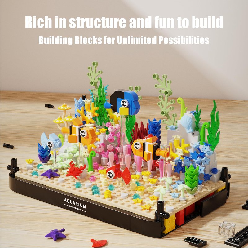 - LEARN WHILE PLAYING: The fish tank building block set is a great STEM toy where kids can learn about science, technology and physics. By building this set, children can use their imagination to create beautiful aquariums, enjoy hours of entertainment while strengthening children's hand-eye coordination, master fine motor skills, improve logical thinking and creativity, let kids stay away from screens and electronics