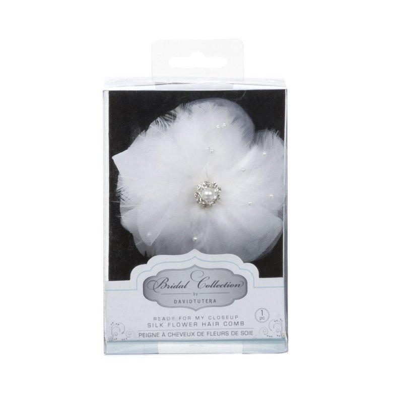 David Tutera Hair Comb - Silk & Feather Flower - White - 4 inches