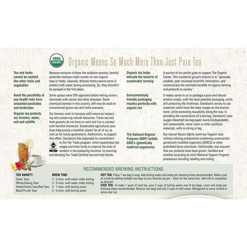 - ALWAYS ORGANIC: Davidson’s Organics is a 3rd generation organic tea grower delivering on its promise of providing top-notch USDA certified organic teas. Our teas are grown non-GMO & free from harmful chemicals and pesticides. We are responsibly sourced and sustainably farmed. We believe in the holistic health of our farms, farmers, plants & animals.
