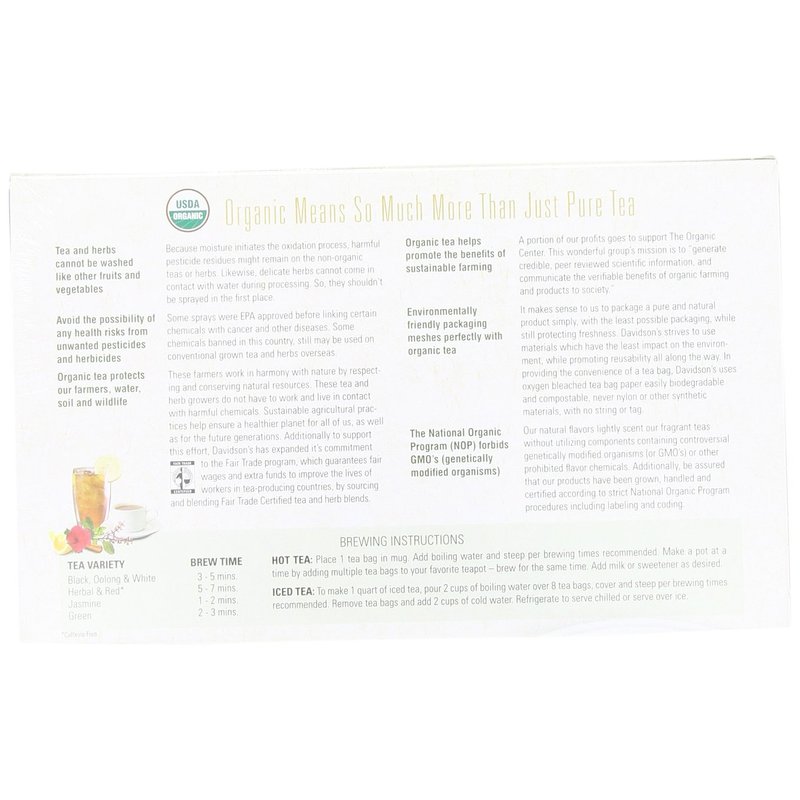 - TRUST OUR TEA: Davidson's Organics was the first purveyor of fine organic teas. Since 1976, we’ve worked tirelessly to develop blends that are true reflections of their names, while being committed to sourcing healthy ingredients grown by generations of skilled small farmers. Enjoy Davidson's Organics, the organic tea that sets the standards for the highest quality.