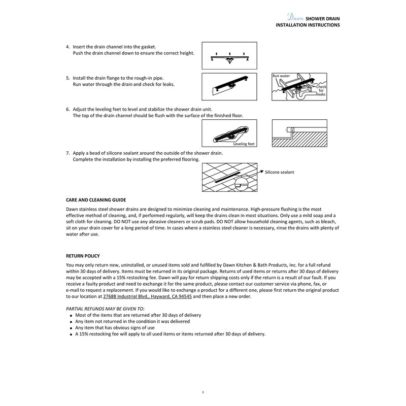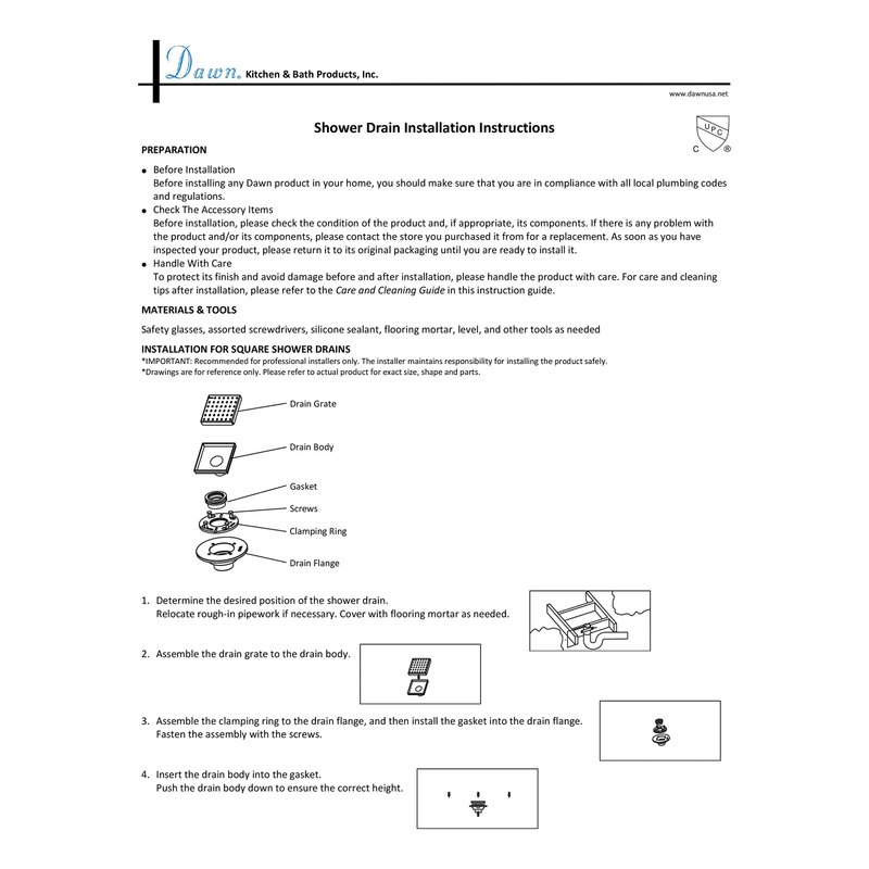- Strongly recommend to purchase Dawn shower drain base Sdb060205 for the installation of Dawn shower drain