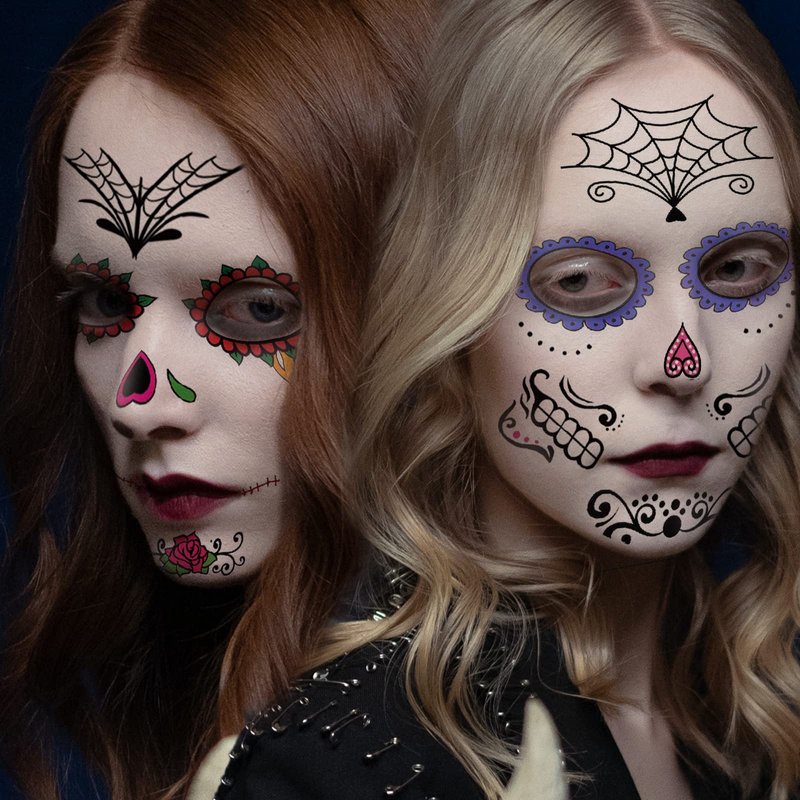 Day of the Dead Face Tattoos - 10 Sheet Hallowe...