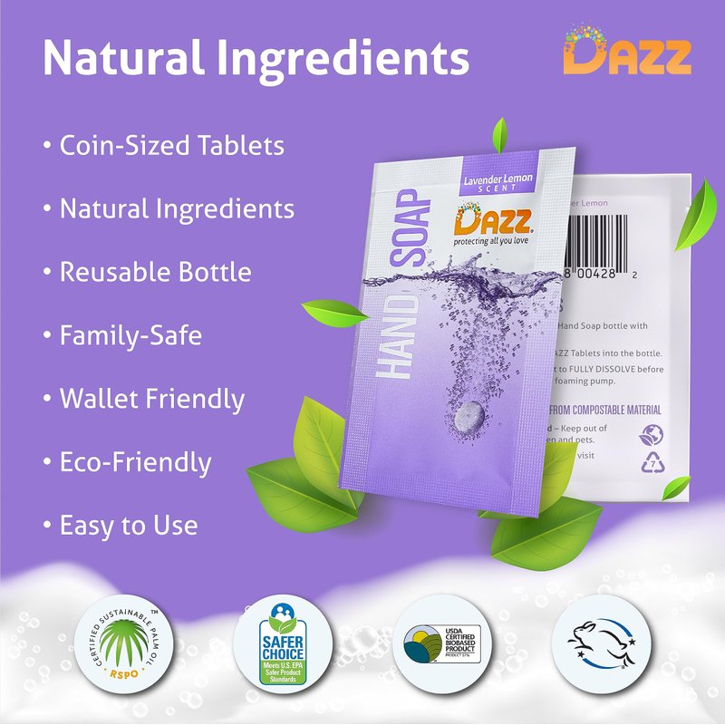 - Not Familiar With DAZZ Tablets? YOU can transform plain tap water into a high quality, earth friendly foaming hand soap in minutes. Simply pour water to the empty bottle, add our cleaning packet and reattach the pump (included in your starter kit!)