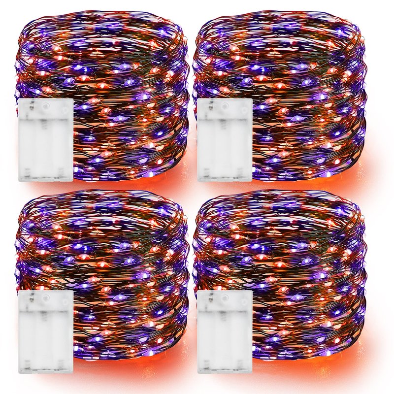Dazzle Bright Purple and Orange Fairy String Lights, 4 Pack Total 80FT 240LED Copper Wire Battery Operated Waterproof Lights, Halloween Decorations for Indoor Home Outdoor Patio Yard Party Decor