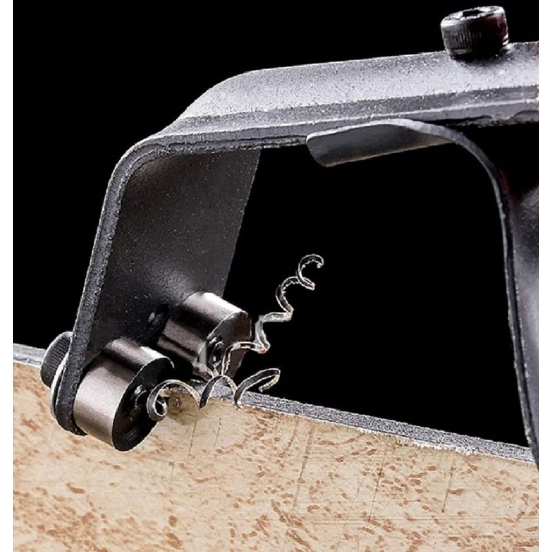 Simultaneously removes burrs from both sides of sheet metal. DB Handle with safety guard to protect your hand. Unique round cutting blades can be rotated and reversed for long life. For corners, use one blade only. Range: 0-12mm.
