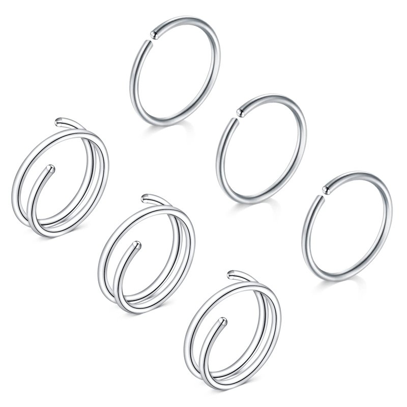 - ✿[Total 6pcs] * 3pcs silver nose rings hoops and double nose rings hoops for single piercing, more choices for everyday wearing