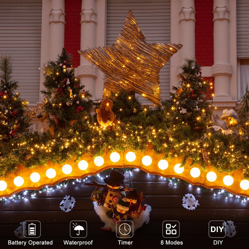 - Timer Function & Dimmable Lighting: These battery operated Christmas lights with timer. Battery Christmas lights also with adjustable 6-level brightness, the Christmas light can be warm or bright. An ideal decoration for Christmas tree.