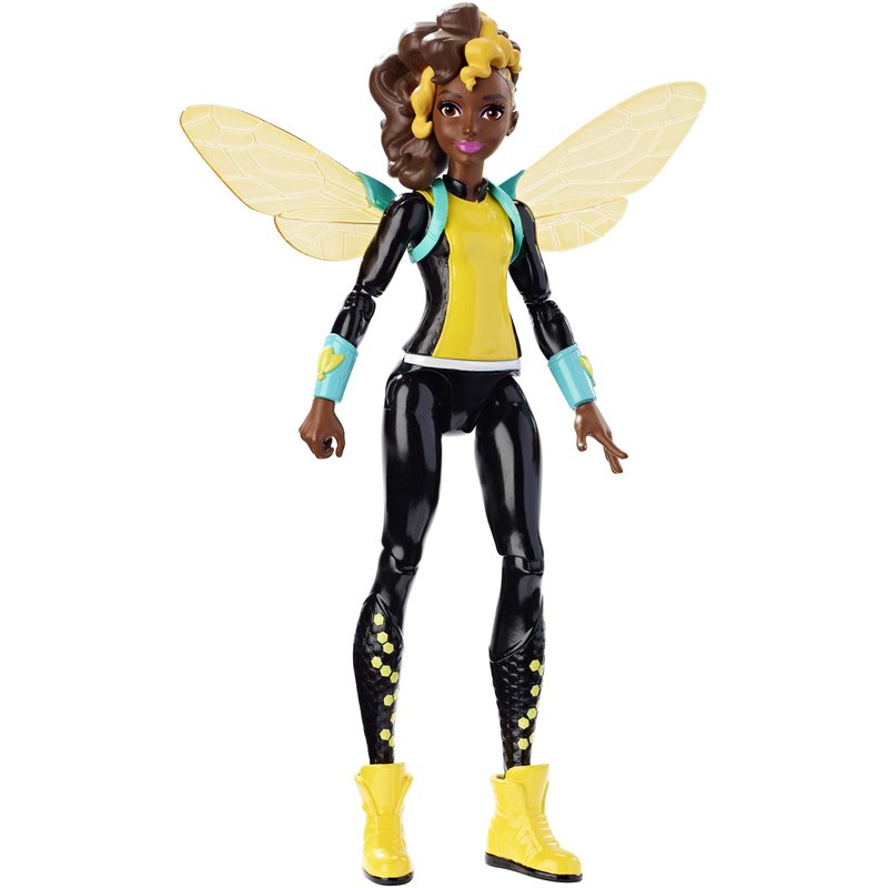 - Bumblebee action figure is ready to save the day in her action-primed outfit (non-removable) that blends iconic elements of the original DC Super Hero character -yellow and black, classic bee stripes and bumblebee wings -with modern trends.