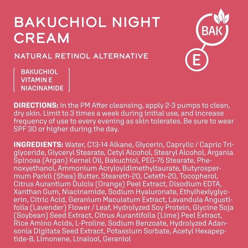 DCL Skincare Bakuchiol Night Cream Natural Retinol Alternative with Niacinamide and Vitamin E, 1.7 mL