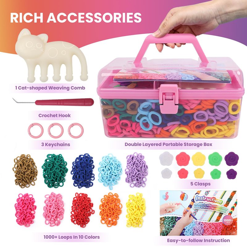 - Portable Carry Case for On-the-Go Creativity: With a cute and practical pink carry case, you can take your loom kit anywhere! Perfect for crafting at home, at a friend's house, or even on the road—craft anytime, anywhere.