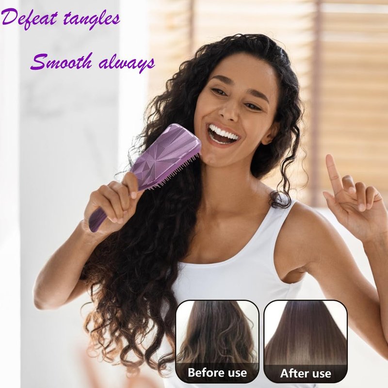 DDHOM Detangler Hair Brush for Adults & Kids Hair (2 Count)- Detangling Brush Without Pain for Natural, Curly, Straight, Wet or Dry Hair,Naturals Glide Thru Hairbrush (Purple + Light Pink)