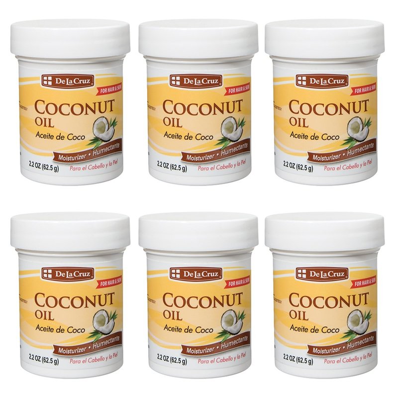 De la Cruz Coconut Oil - Expeller Pressed Coconut Oil for Skin and Hair - Natural Moisturizer for Skin and Hair - 2.2oz (6 Jars)