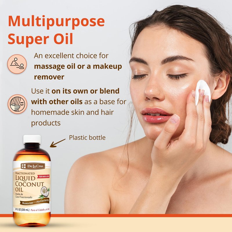 - Light, nourishing and versatile, De La Cruz Fractionated Liquid Coconut Oil is a light, smooth and fragrant coconut oil for skin and hair which can help restore the lipid barrier of your skin, leaving it soft, supple and well moisturized
