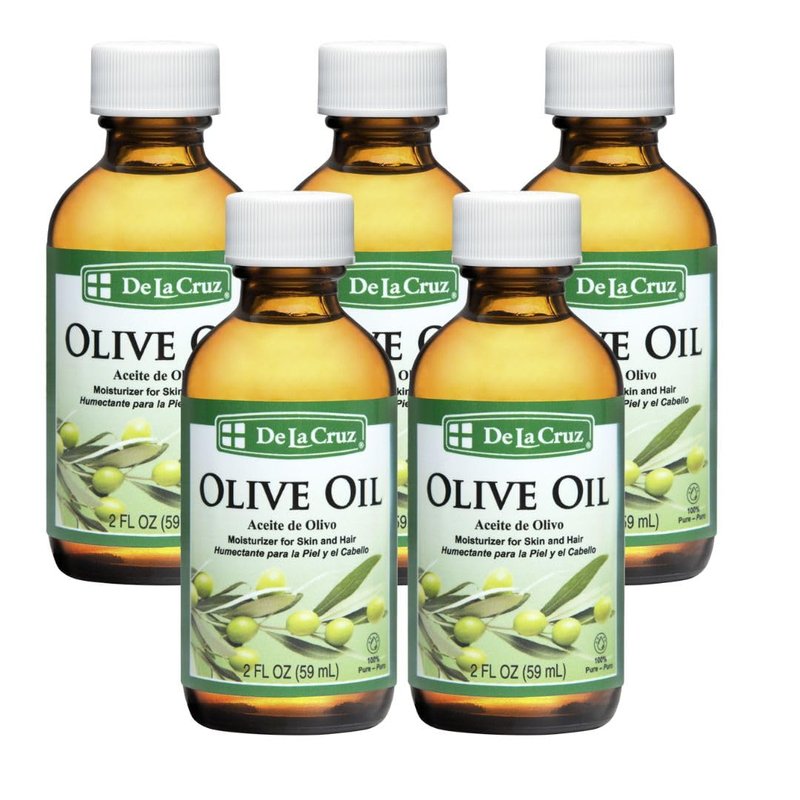 De La Cruz Pure Olive Oil - Natural Expeller Pressed Olive Oil for Hair and Skin - Lightweight Body Oil for Dry Skin 2 Fl Oz (5 Bottles)