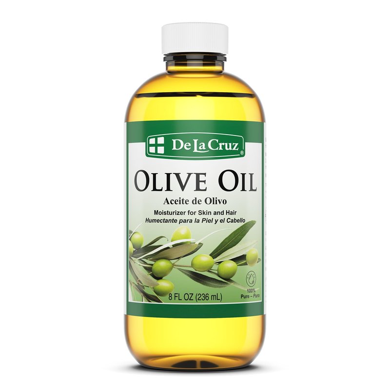 - 100% Pure Olive Oil for hair by De La Cruz is a great choice for moisturizing and conditioning dry and thick hair. It can help smoothen broken ends, decrease friction in the hair, detangle and minimize frizz