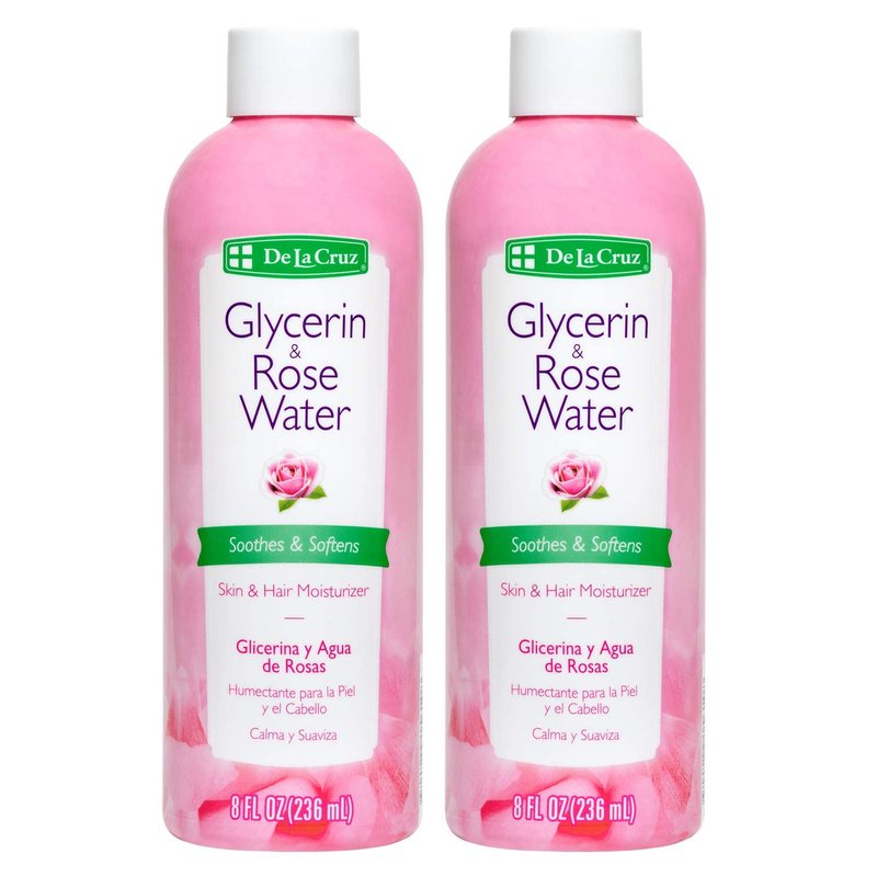 De La Cruz Rose Water and Glycerin for Face - Rosewater Facial Toner and Moisturizer for Skin and Hair 8 fl oz (236 mL) - 2 Bottles