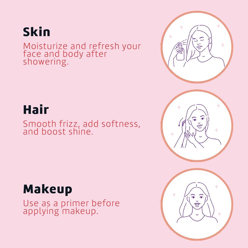 Splash all over face, hair and body after a shower or anytime during the day for a quick lavishing refresh. Use as a toner or hydrating mist.