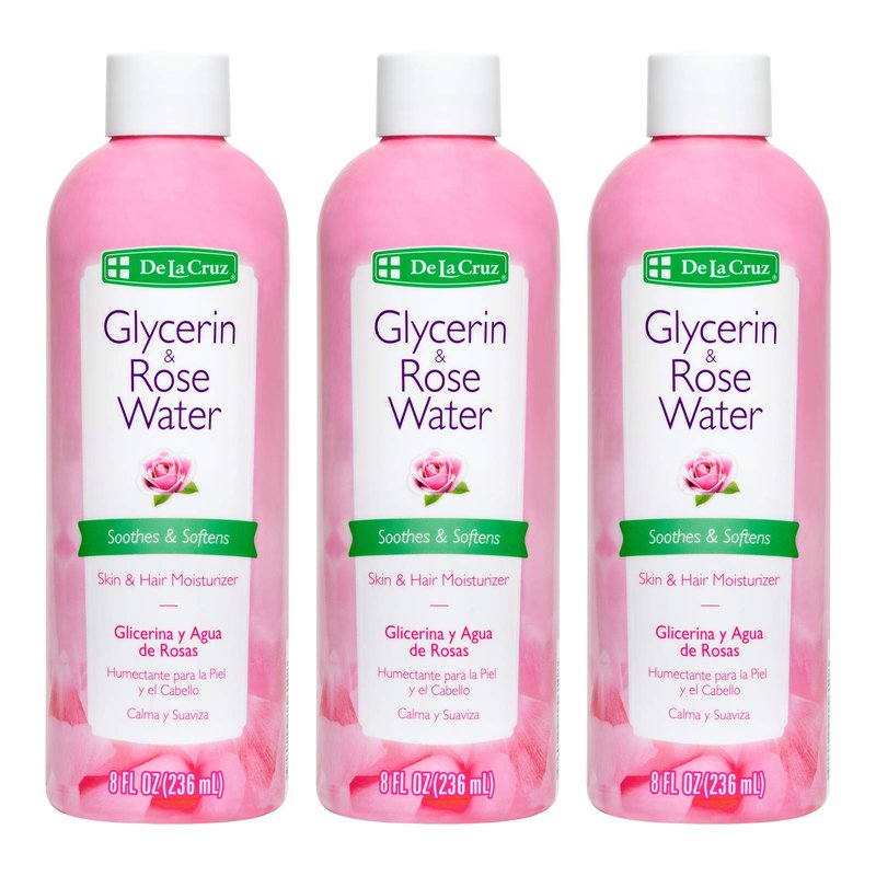 De La Cruz Rose Water and Glycerin for Face - Rosewater Facial Toner and Moisturizer for Skin and Hair 8 fl oz (236 mL) - 3 Bottles