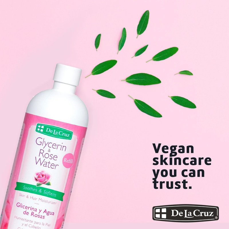 De La Cruz Rose Water and Glycerin for Face - Rosewater Facial Toner and Moisturizer for Skin and Hair Refill Bottle 16 fl oz. (473 mL) - 1 Bottle