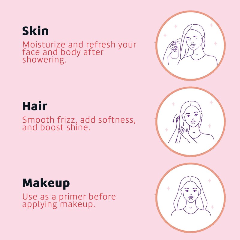 Splash all over face, hair and body after a shower or anytime during the day for a quick lavishing refresh. Use as a toner or hydrating mist.