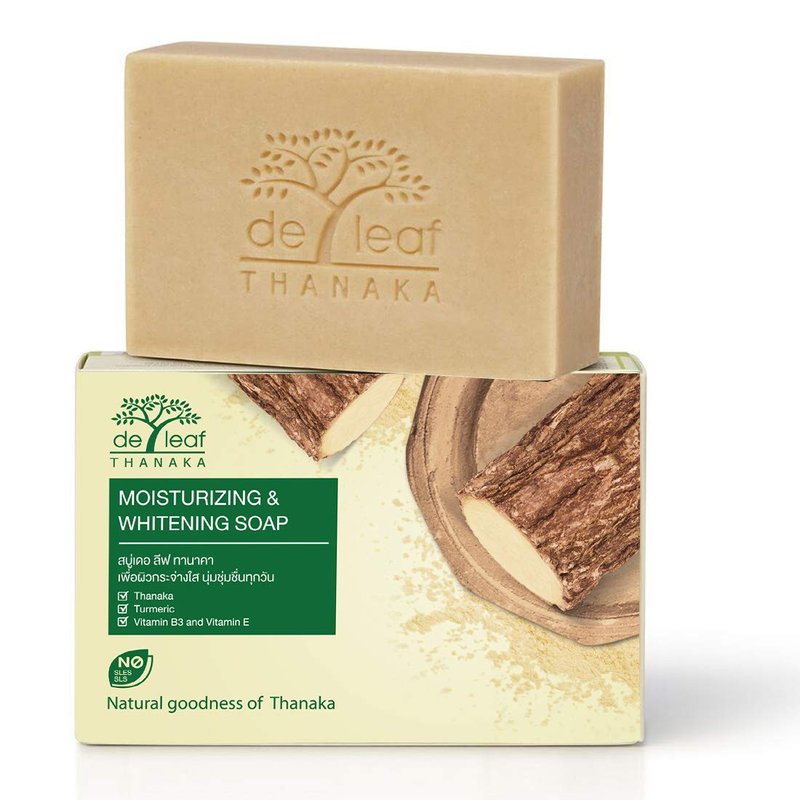 DE LEAF THANAKA Natural Moisturizing Bar Soap, Vitamin B3 E Beauty Deep Cleansing Hydration Moisturize Clean Natural Face Facial Body Skin Soap, 100g 3Pack Count Thanaka (3)