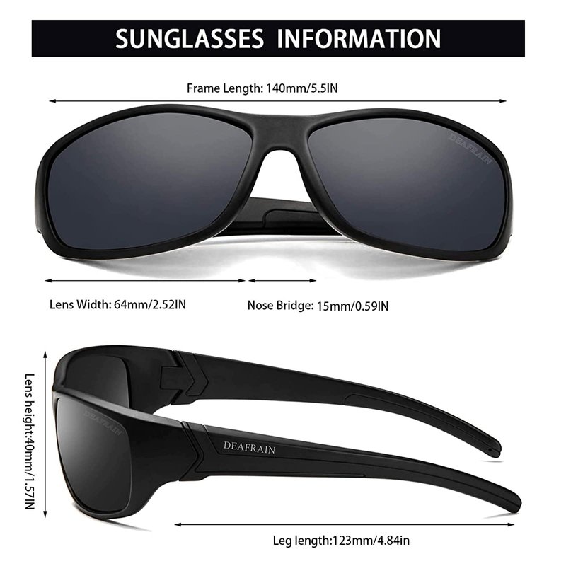 DEAFRAIN polarized sports Sunglasses, not only perfect for your weekend adventures, but also an excellent choice for your weekday commute. If you have one to come to know it, I guess you gonna love it. More details on DEAFRAIN Sports Sunglasses: