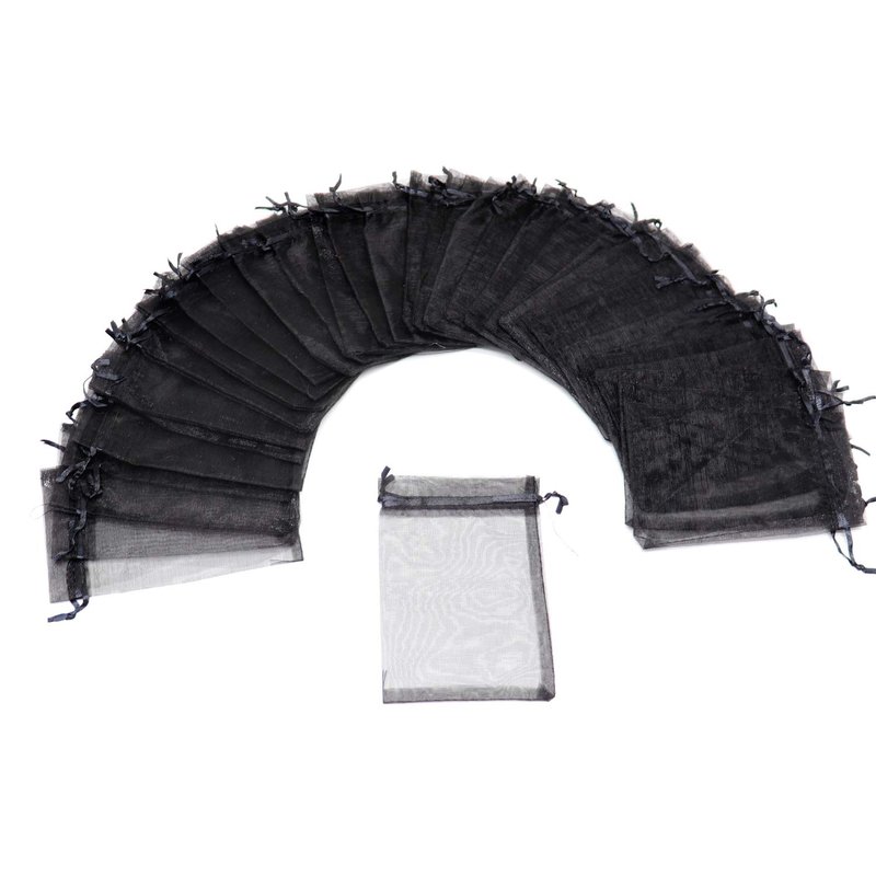 Dealglad® 100pcs Drawstring Organza Jewelry Candy Pouch Party Wedding Favor Gift Bags (6x8, Black)