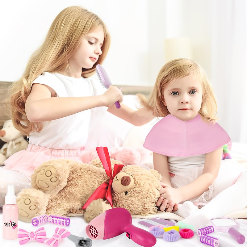 deAO Girls Beauty Salon Set, 32PCS Kids Beauty Salon Toy Kit,Pretend Play Hair Stylist Toy Kit with Hairdryer, Barber Costume Apron,Hair Styling Toy Playset Christmas Birthday for Girls