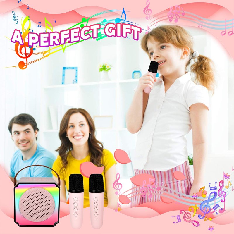 deAO Karaoke Machine for Kids Adults,Portable Bluetooth Speaker with Wireless Microphones, Fun Voice Changing Function-Toys for 5 6 7 8 9 10 Year Old Girl Boys Birthday Gifts (Pink)
