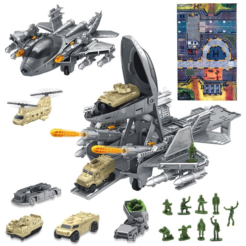 deAO Military Airplane Toys for Boys,Army Toys Fighter Jet with 8 Vehicles,10 Soldier Amry Men,19PCS Airplane Tanks Toys,Great Military Toys Gift for 3 4 5 6 Boys Girls Kids