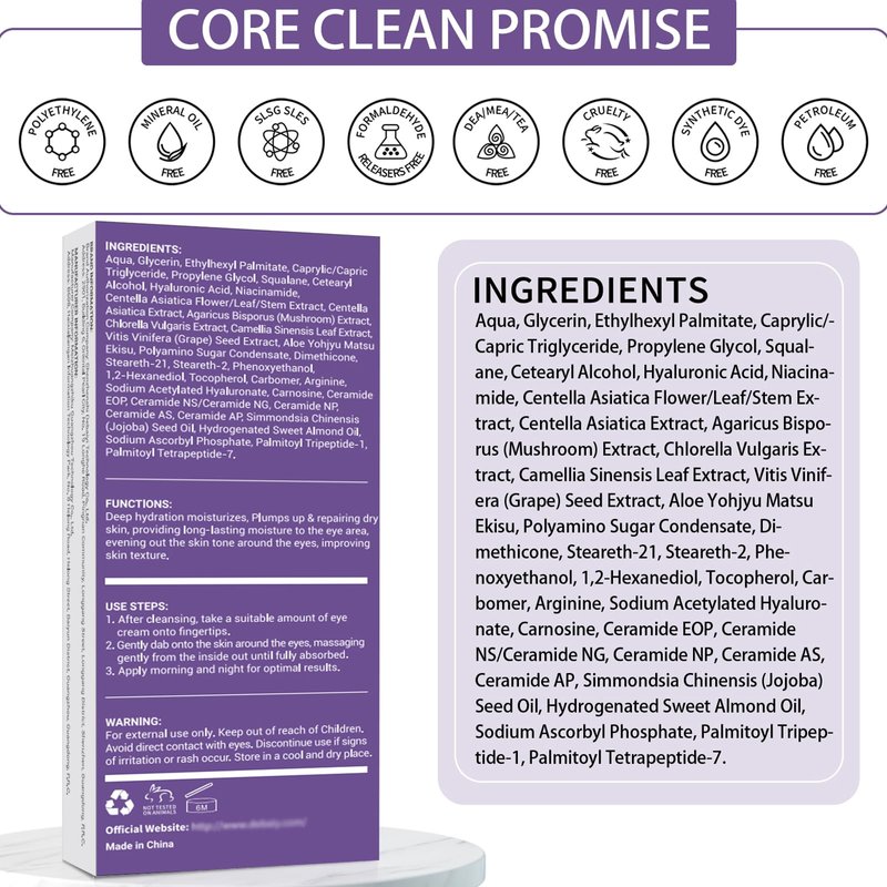 Our eye cream is specially formulated to smooth fine lines and improve skin texture, giving you a more youthful and refreshed look. The inclusion of Polypeptides and multiple Ceramides helps to enhance skin elasticity, making the skin around your eyes firmer and more resilient.