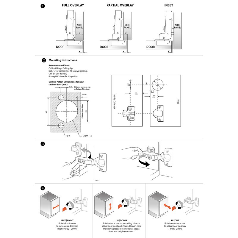 DecoBasics Kitchen Cabinet Frameless Hinges (Pack of 2), Soft Close Door Hinges, Metal Hinges For Kitchen Drawers, Cabinet Hardware, 3 Way Adjustability & Easy Installation