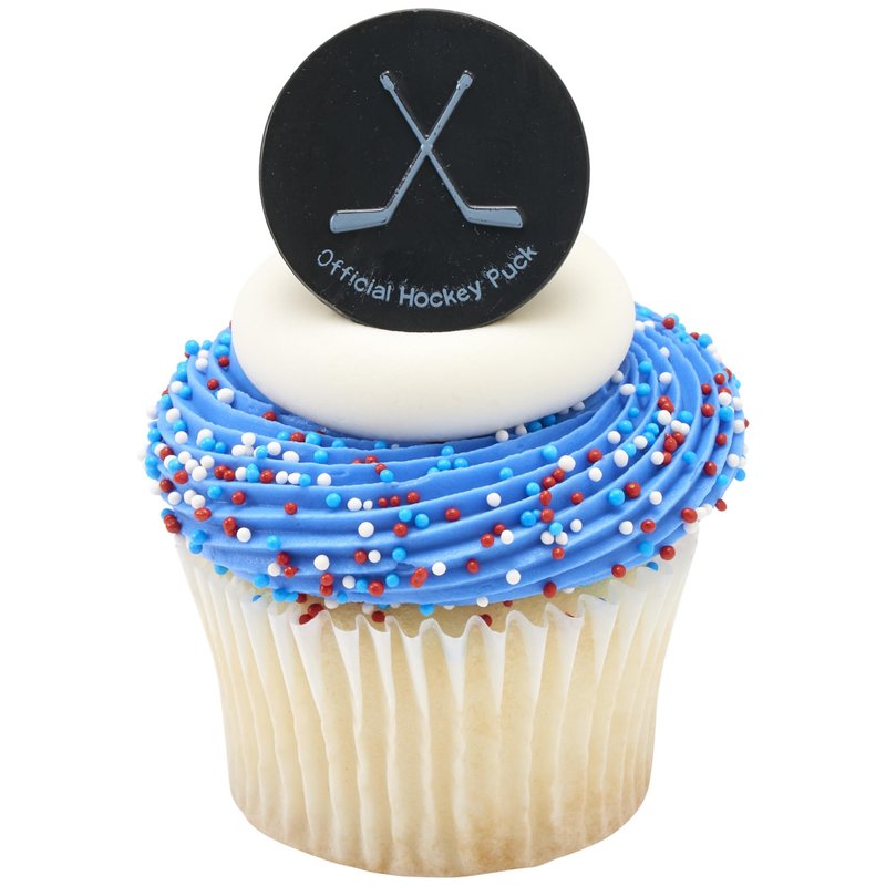 - DecoPac Hockey Cupcake Rings - 24 Cupcake Rings featuring 3d molded hockey pucks. Celebrate the Ice Hockey season with these fun hockey cupcake toppers.