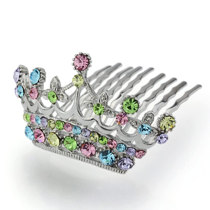 Decorative Hair Comb Miniture Princess Tiara Rhinestone Crystal Flowers Bridal Hair Comb, Rainbow