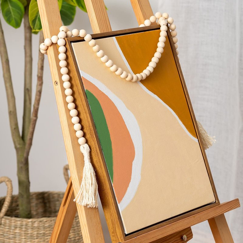 DECORKEY Farmhouse Wood Beads Garland Decor, 58 Inch Wooden Beads for Boho Home Decor with Tassels, Rustic Country Decor for Table, Wall, Shelf, Tray, Vase, Living Room, Bedroom, Summer