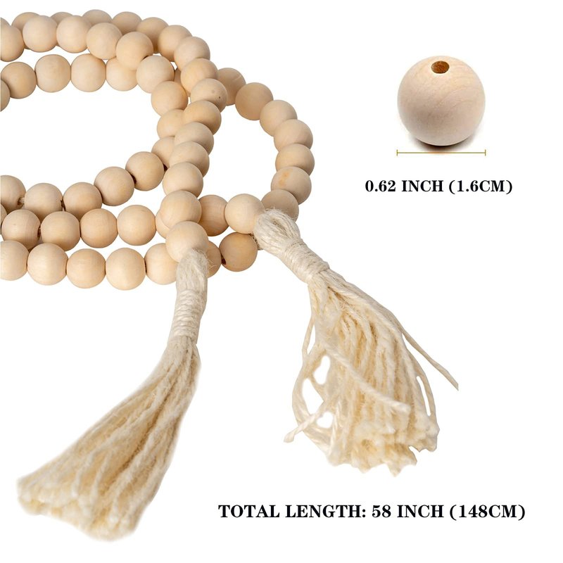 DECORKEY Wooden Beads, 58 Inch Farmhouse Wood Beads Garland for Boho Decor with Tassels, Rustic Country Decor for Coffee Table, Home, Living Room, Bedroom