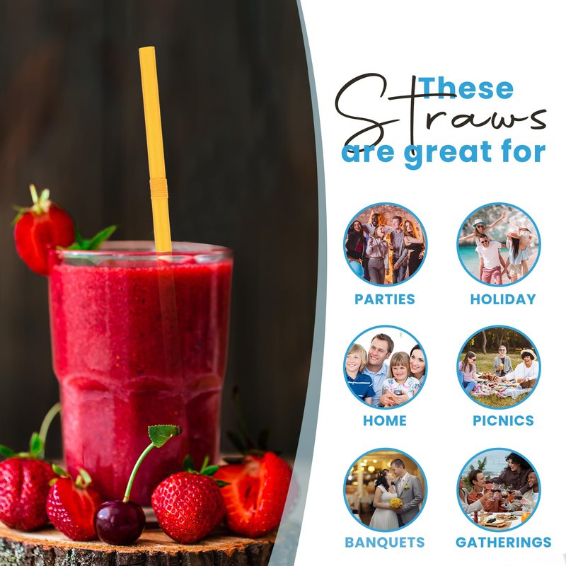 - ✅600 Pack: Sturdy Straws that are 8.25" long, 0.25" in diameter and stretchable. Bend without breaking, wide-mouthed straws to easily accommodate drinks that are thick like smoothies, slushies, milkshakes, shakes and other frozen drinks.
