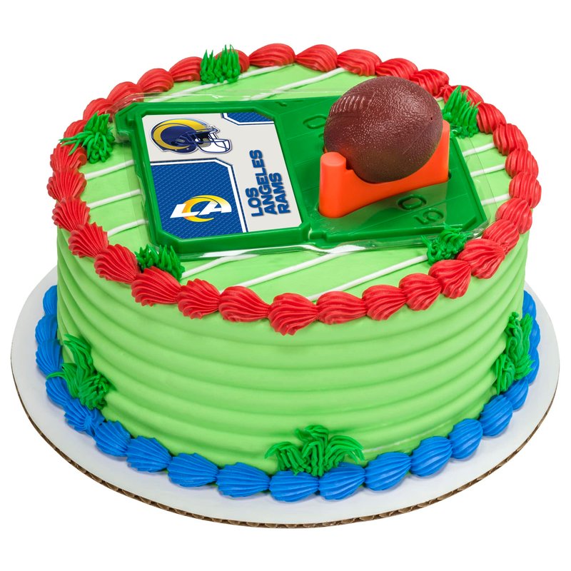 DECOSET NFL Los Angeles Rams Football & Tee Cake Decorations, 3-Pc, Cake Topper with Field & Team Sticker, Tee & Football, Licensed Product Of The NFL, Birthday Cake Decorations For After Party Fun