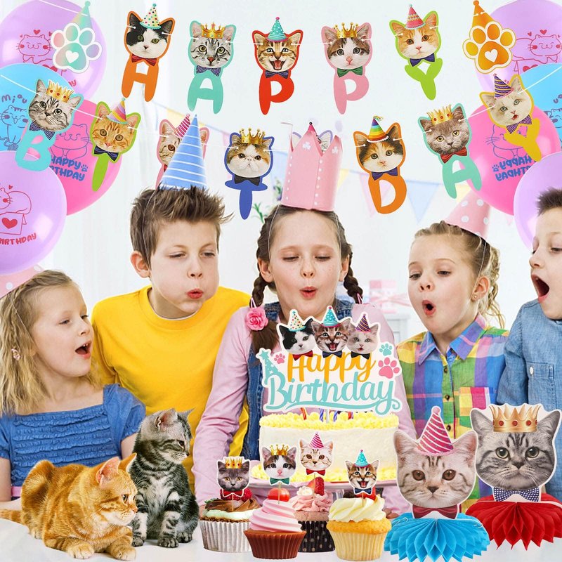 • Easy to Use: The cat birthday party supplies require simple assembly by hand. By using the gadgets we provide, you can decorate your birthday party with birthday banners and cat party favors with only simple assembly