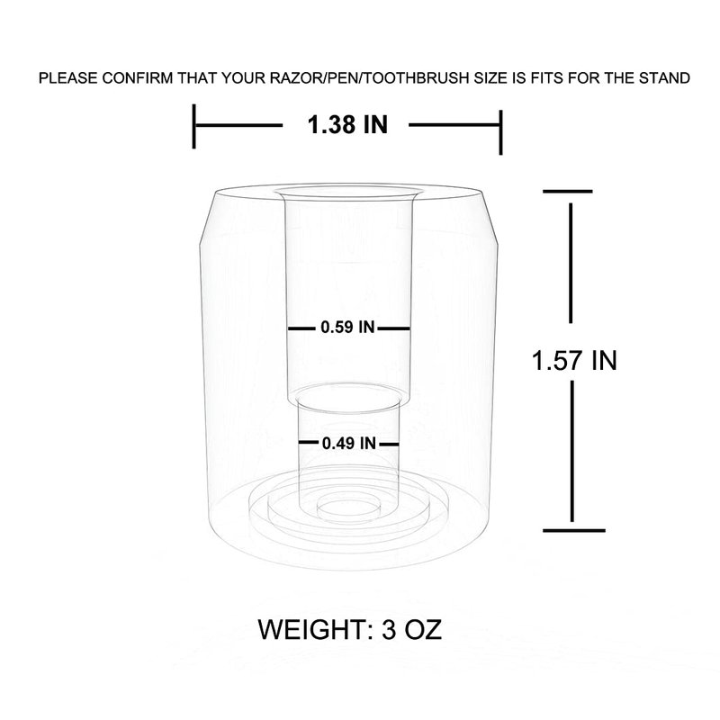 - Opening dimension is 1.5cm/0.59" for which handle diameter are smaller than 1.5cm/0.59", fits most of the safety razors besides Gillette. Please confirm your razor is fit for this stand. If for any reason you are not satisfied, feel free to contact us.