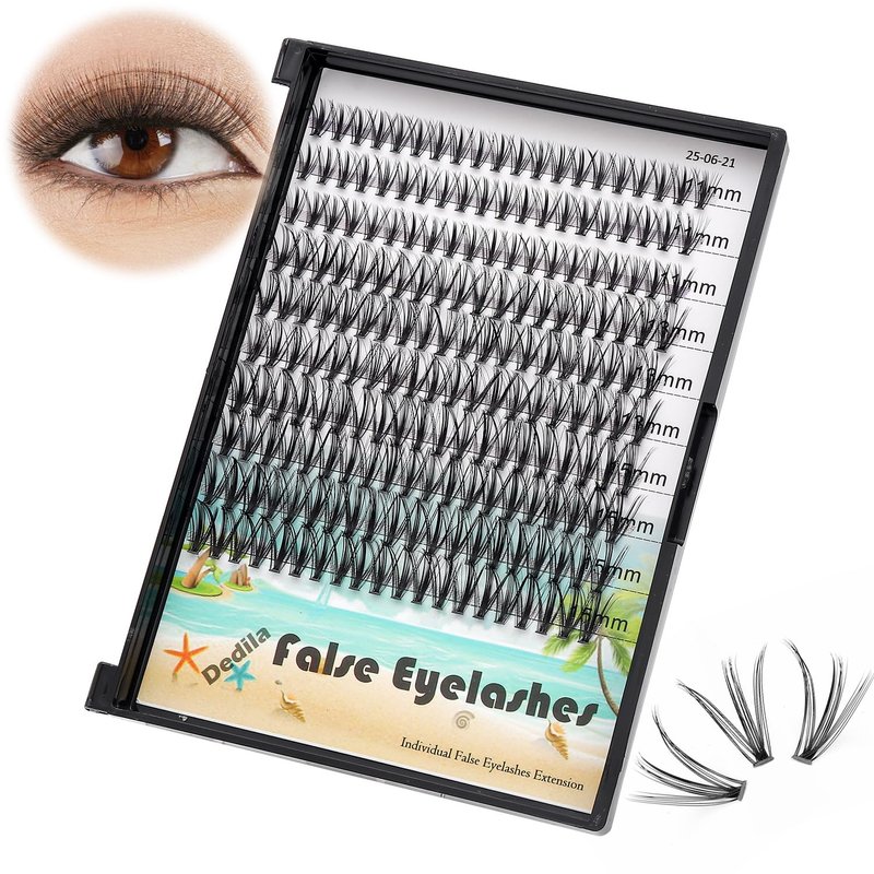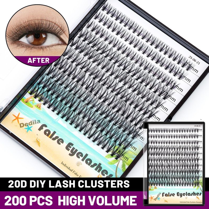 Dedila 200Pcs Handmade Individual False Eyelashes Thickness 0.07mm D Curl Mixed 10-12-14mm /11-13-15mm/12-14-16mm/16-18-20mm 3D Volume Cluster Eye Lashes Etensions (11-13-15mm)