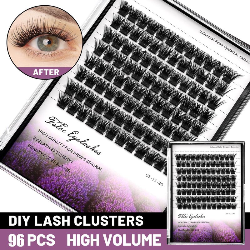 Dedila 96pcs Wide Stem Dramatic Volume Eye Lashes Extensions D Curl Black Soft Individual False Eyelashes Cluster Makeup Toos (18mm)