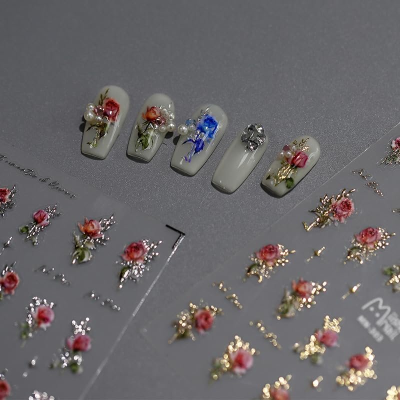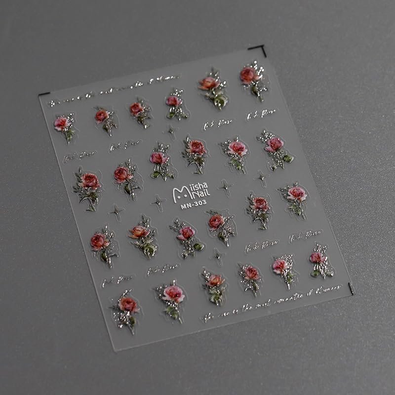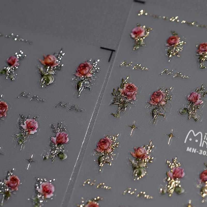 Product Name: Rose series nail stickers Packaging: 3 different styles of rose stickers Design: Rose Function: Nail art or DIY creation