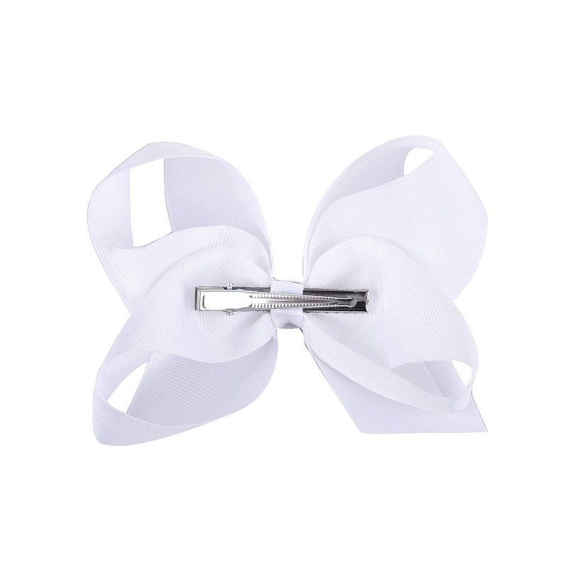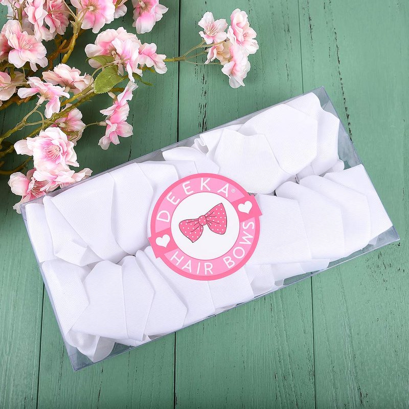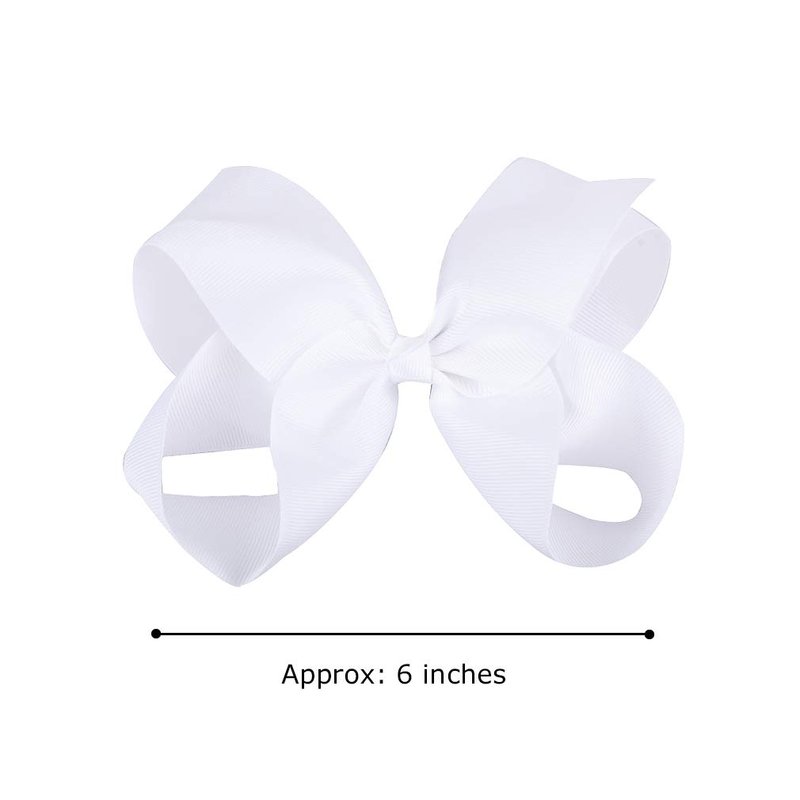- DEEKA Hair Bows are 6" across (hand-made, please allow the discrepancy) with a 2.2 lined alligator clip, using 2" grosgrain ribbon. One bow weight: 0.5 ounce, Color of Solid White
