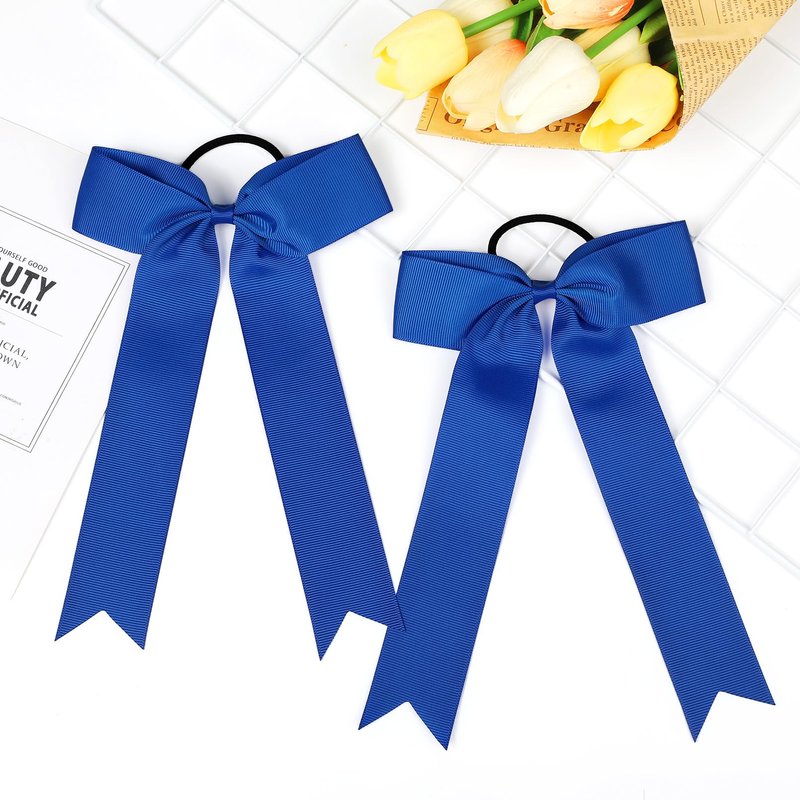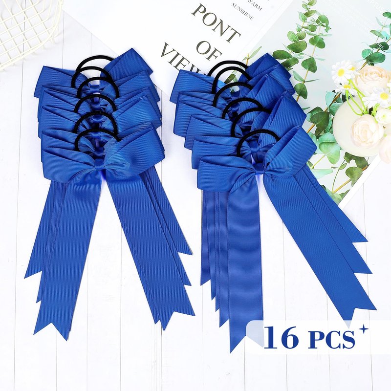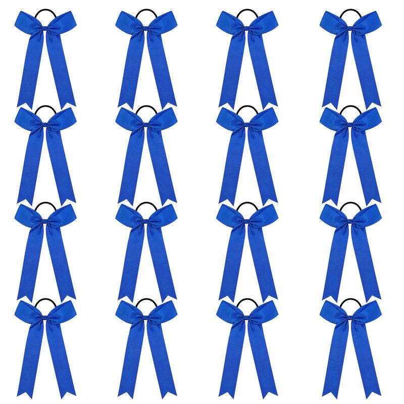 DEEKA 16 PCS Collegiate Style Cheer Bows Long Tail Skinny Cheer Bow Ponytail Holder Handmade Bows for Girls Teens Softball Cheerleader Sports -Royal Blue