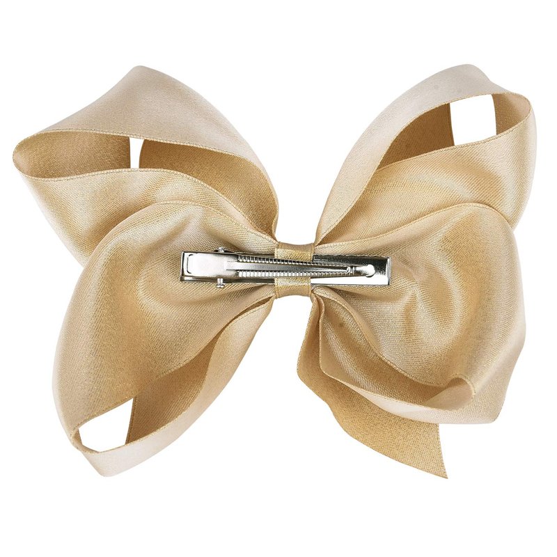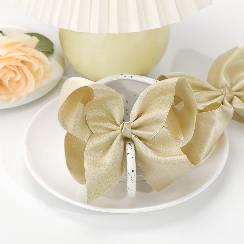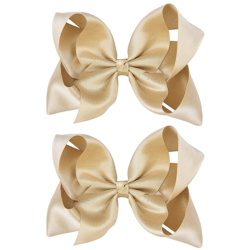 DEEKA 2 PCS 6" Big Hand-made Shiny Glitter Ribbon Hair Bows Alligator Clips Hair Accessories for Little Teen Toddler Girls Kids Set of 2 -Light Gold