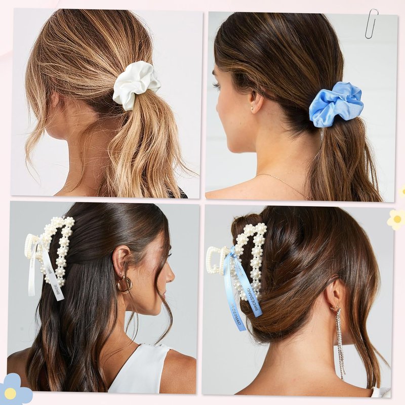 - High Quality - Made with premium materials, these pearl clips are designed to securely hold your hair in place. Each bracelet is lovingly made from a premium quality alloy. These bridesmaid hair ties are made of satin fabric,glossy and comfortable, would be a great way to add a splash of color to your outfits.