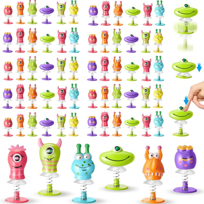 Features: The spring loaded toy can be applied as a nice toy to given to you boy or girl, classmate, friend, etc. The spring toy is suitable as a gift bag filler, class reward, game prize, goodie bag filler, and more. Specifications: Material: plastic Color: as shown in the pictures Size: 1.9-2.4 inch in height, 0.98 inch in bottom base Package includes: 100 x Spring toys Notes: Manual measurement, please allow slight errors on size. The color may exist a slight difference due to different screen displays. Suitable for people over 12 years old.